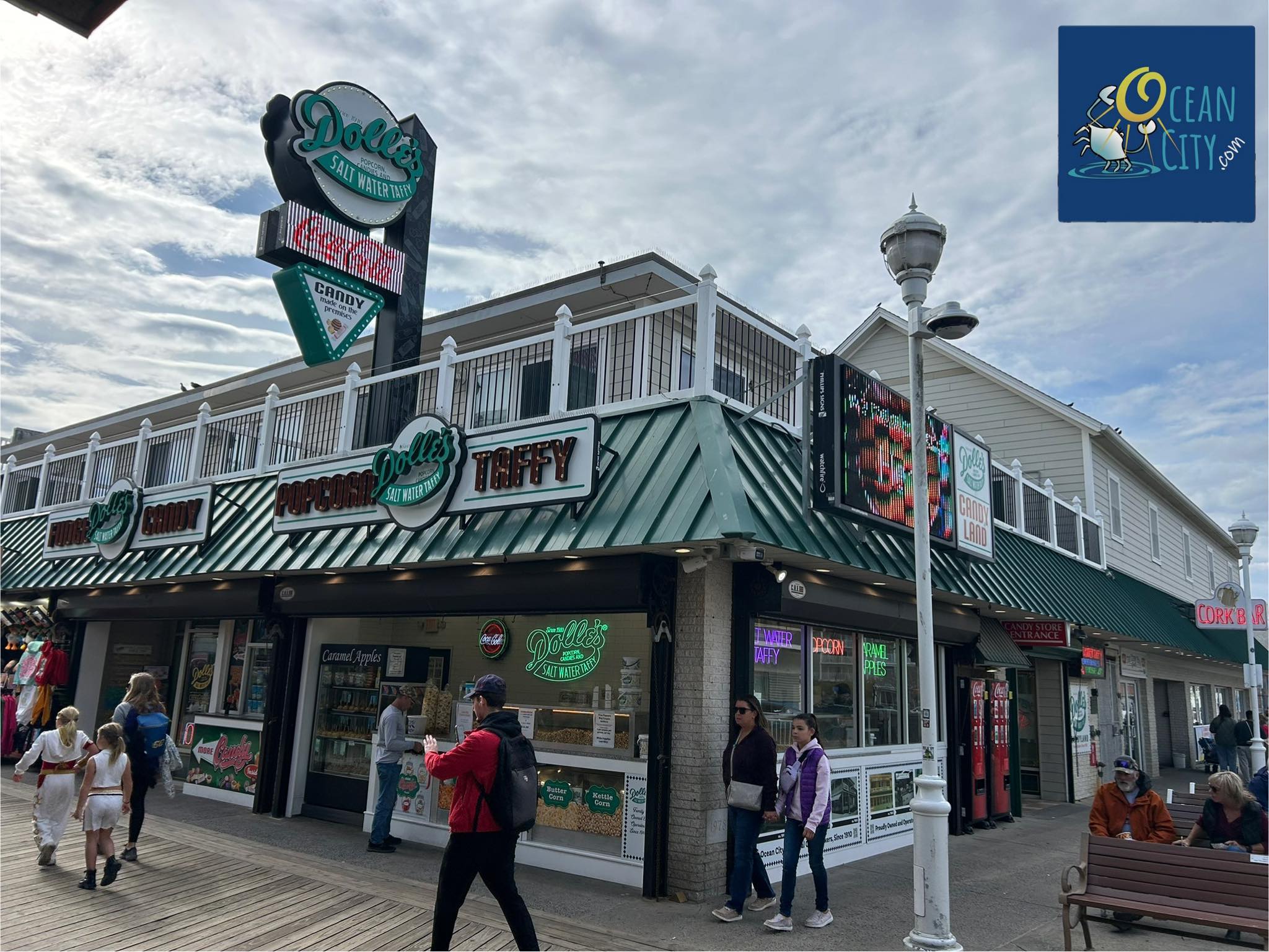 Dolle’s on the corner of Wicomico Street and the Boards is our Flagship store and original location. We’ve been making candy across from the Ocean City pier since 1910! Today, all of our delicious treats—popcorn, fudge, brittles, caramels, chocolates, and our famous salt water taffy—are still manufactured right here where it all began. Here, you can pick your own salt water taffy in kiss shape, stick shape, and sugar free! This store carries the full line of products that we manufacture as well as gummy candies and licorice.