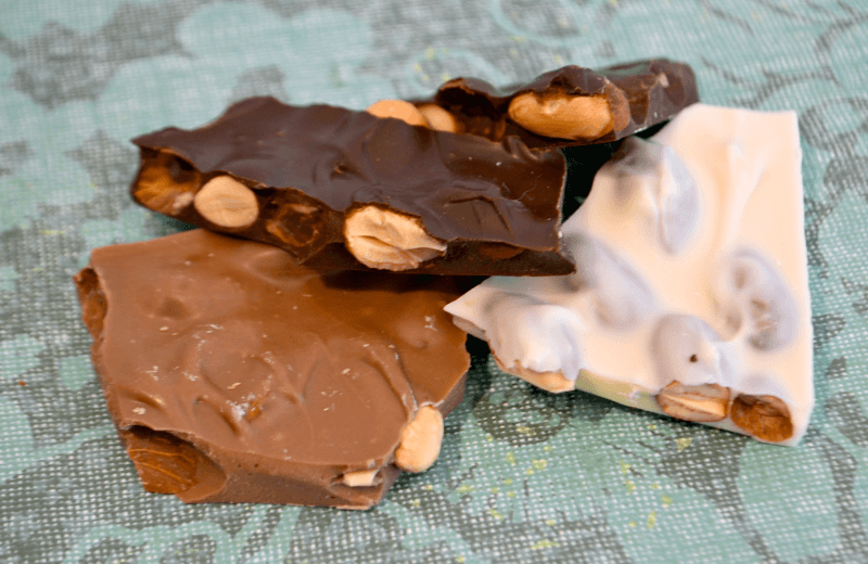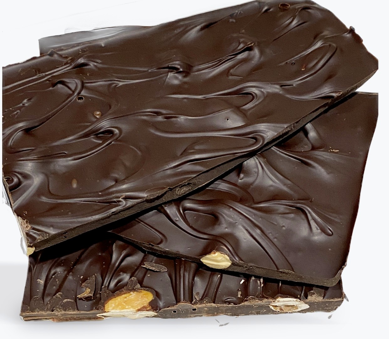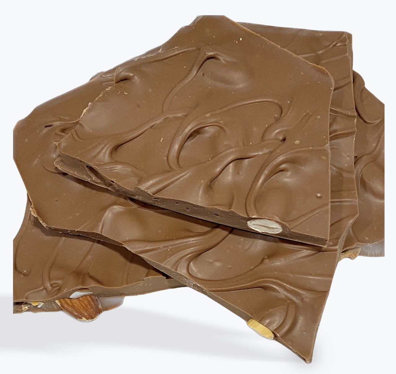An ideal sweet crunchy treat. Almond bark is available in milk, dark or white chocolate.