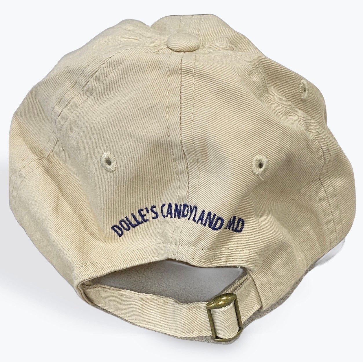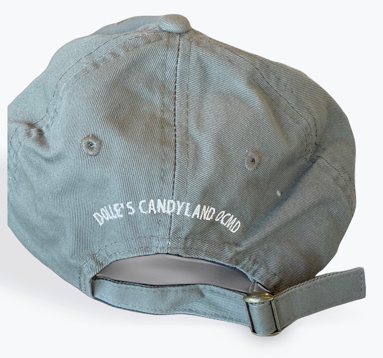 Comfort meets simple designs with our signature Dolle’s® unstructured baseball hat. Available in Khaki with navy blue embroidery or Olive with cream embroidery. Each had has a small salt water taffy graphic embroidered on the front left side with “Dolle’s Candyland, OCMD” embroidered on the back of the hat. Makes a perfect gift!