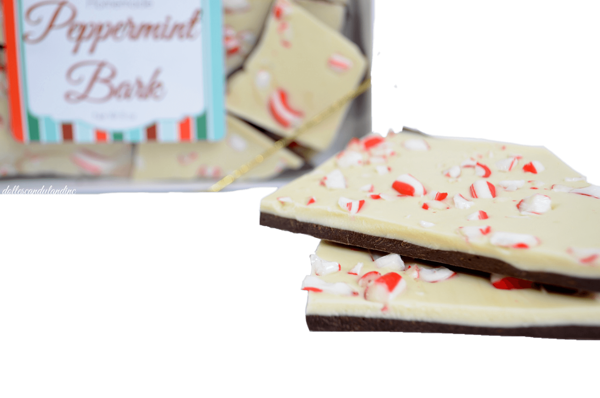 Our own homemade peppermint bark is a layer of our creamy dark chocolate, a layer of our peppermint oil infused white chocolate, and crushed handmade peppermint candy canes. A wonderful holiday treat that we only make for Christmas. Get it while you can, only available in limited quantities and while supplies last!